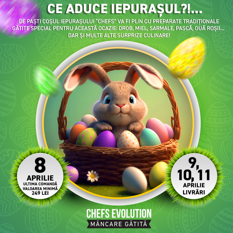 La chefsevolution.ro poti comanda mancare gatita, precum sarmale cu carne de porc, mancarica turceasca, zucchini Noodles, tocana braziliana cu vitel de lapte, YaKitori cu legume Crispy si parmezan, clatite cu tot felul de umpluturi si multe altele. Mancarea gatita este livrata acasa imediat sau pur si simplu, la data si la ora dorita. Proaspat preparata de bucatarii profesionisti, ambalata, mancarea gatita este delicioasa si aromata. Asa ca te poti bucura de mancarea preferata acasa intr-un timp scurt.