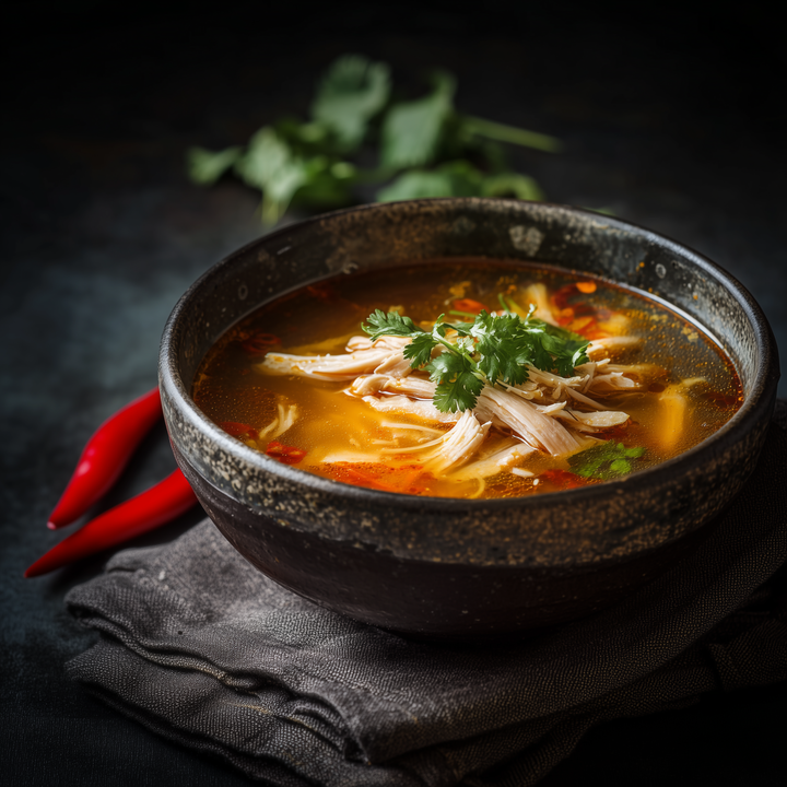 Ciorbă acră de găină gătită ca acasă, cu carne fragedă, borș autentic și leuștean proaspăt. Rețetă tradițională, perfectă pentru un prânz sățios și gustos.