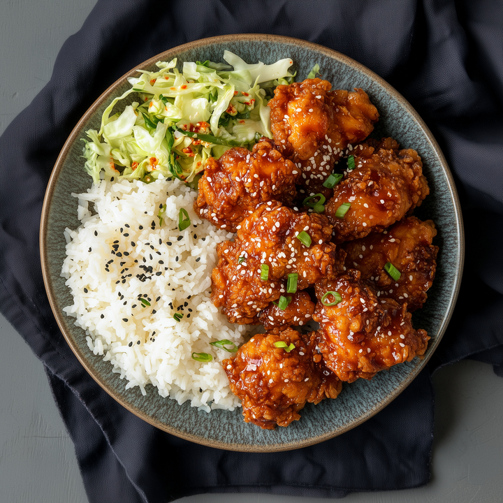 Simte pulsul bucătăriei coreene cu Korean Fried Chicken de la Chefs Evolution – o combinație crocantă, aromată și irezistibilă, care îmbină savoarea condimentelor orientale cu texturile perfecte ale puiului prăjit și ale garniturii echilibrate de orez și varză.